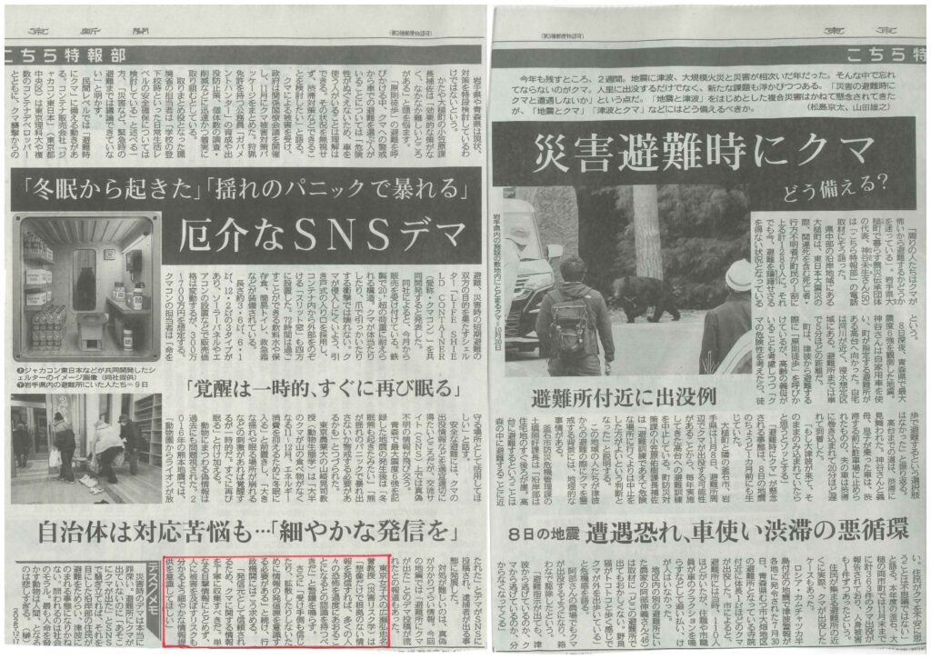 2025年12月17日東京新聞朝刊「熊との出合いを恐れて災害時に避難行動をためらうのは本末転倒」 2025年12月17日 2025年12月17日東京新聞朝刊「熊との出合いを恐れて災害時に避難行動をためらうのは本末転倒」(🔍クリックして拡大) 東京新聞災害リスク学避難行動 Prev Post 2025年10月25日プレジデントオンライン「日野行介氏と対談-原発再稼働の為の政府のインチキ 2025年10月31日 関連記事 2025年10月25日プレジデントオンライン「日野行介氏と対談-原発再稼働の為の政府のインチキ 2025年10月31日 2025年10月6日西日本新聞「九州電力玄海原発の過酷事故の場合外国人旅行者は避難できない」 2025年10月17日 福岡高裁、川内原発の再稼働を容認-手続論に終始し、リスクの根源に踏み込まず-西日本新聞8月28日 2025年9月1日