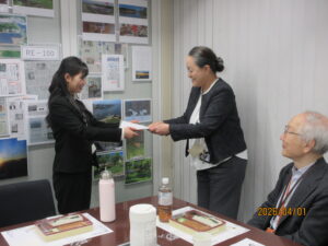 入社して二日が経ちました。天候は雨が降ったりやんだりしていて、寒かったです。会長、社長、先輩方がとても心が温かく言葉をかけてくださって、外国人として安心し、長く働けることを感じています。日本の企業で働けるよう、このチャンスをとても大事にして、精一杯頑張ります。